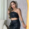 Conjunto em courino preto com fivelas, para quem gosta de ousar com peças modernas e cheias de