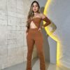 Macacao Samanta é uma peça única que une estilo e conforto. Marrom com detalhe na manga longa. Ideal